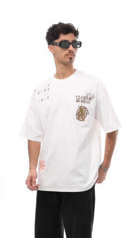تميّز بإطلالة غير تقليدية مع تيشيرت كود أوريچن من إكسوبلانت. تصميم أوفرسايز بتوزيع فني لعناصر رمزية غامضة ونقوش بأسلوب معاصر، تضيف عمقًا بصريًا يعكس الذوق الشخصي ولفت الانتباه بدون صخب.مثالي لكل من يبحث عن القطعة اللي تتكلم عن شخصيته بصمت أنيق وتفاصيل مدروسة.