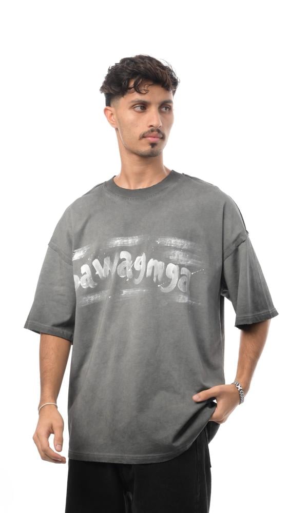 تيشيرت "سواجما ستايل" من إكسوبلانت يتميز بتأثير بصري فني غير تقليدي بطريقة ناعمة ومُلفتة. التصميم الباهت للحروف يمنح القطعة طابعًا فنيًا يوحي بالحركة والعفوية.