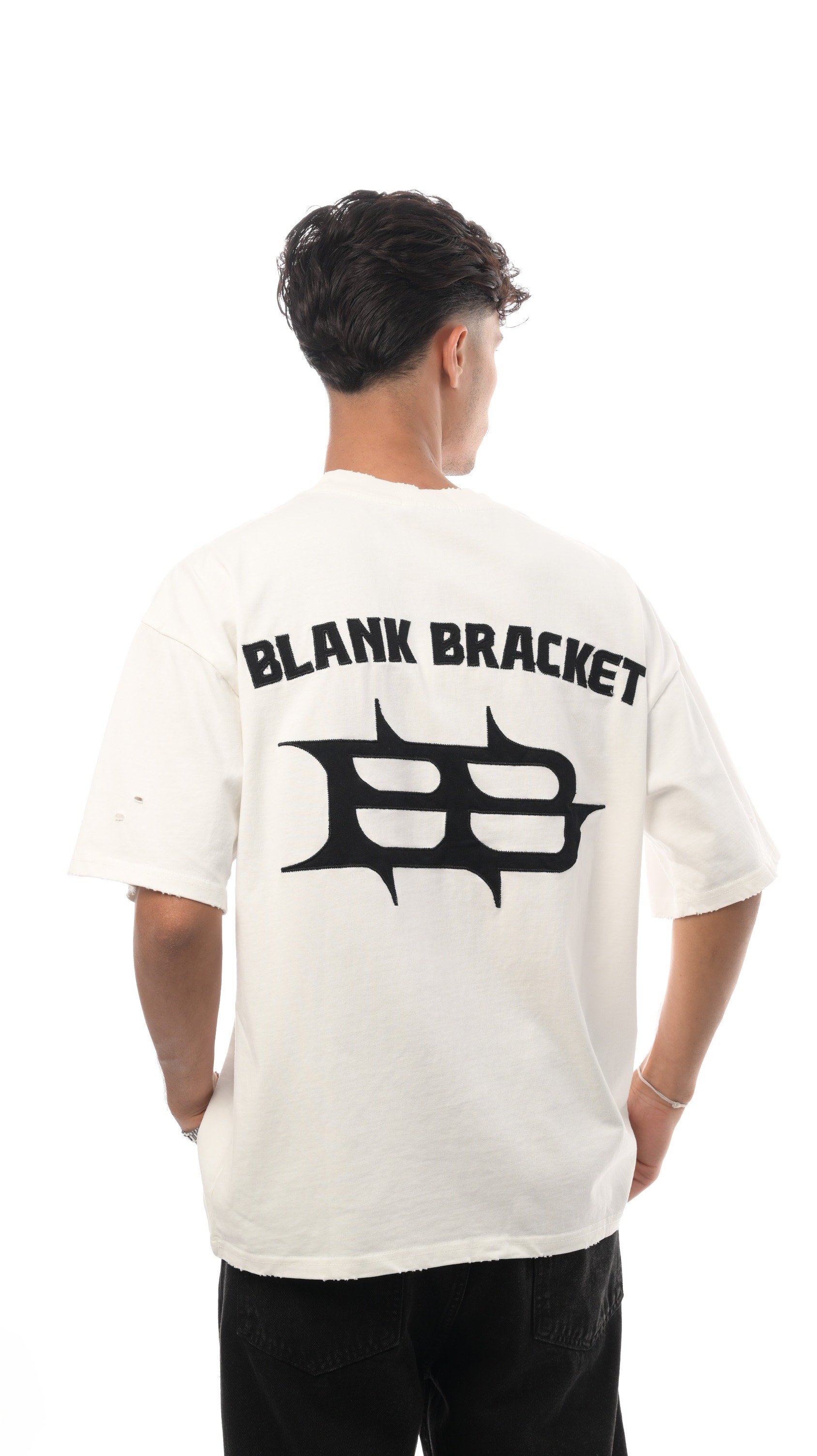 - تصميم خلفي كبير بكلمة "BLANK BRACKET" وشعار فني بأسلوب مميز.