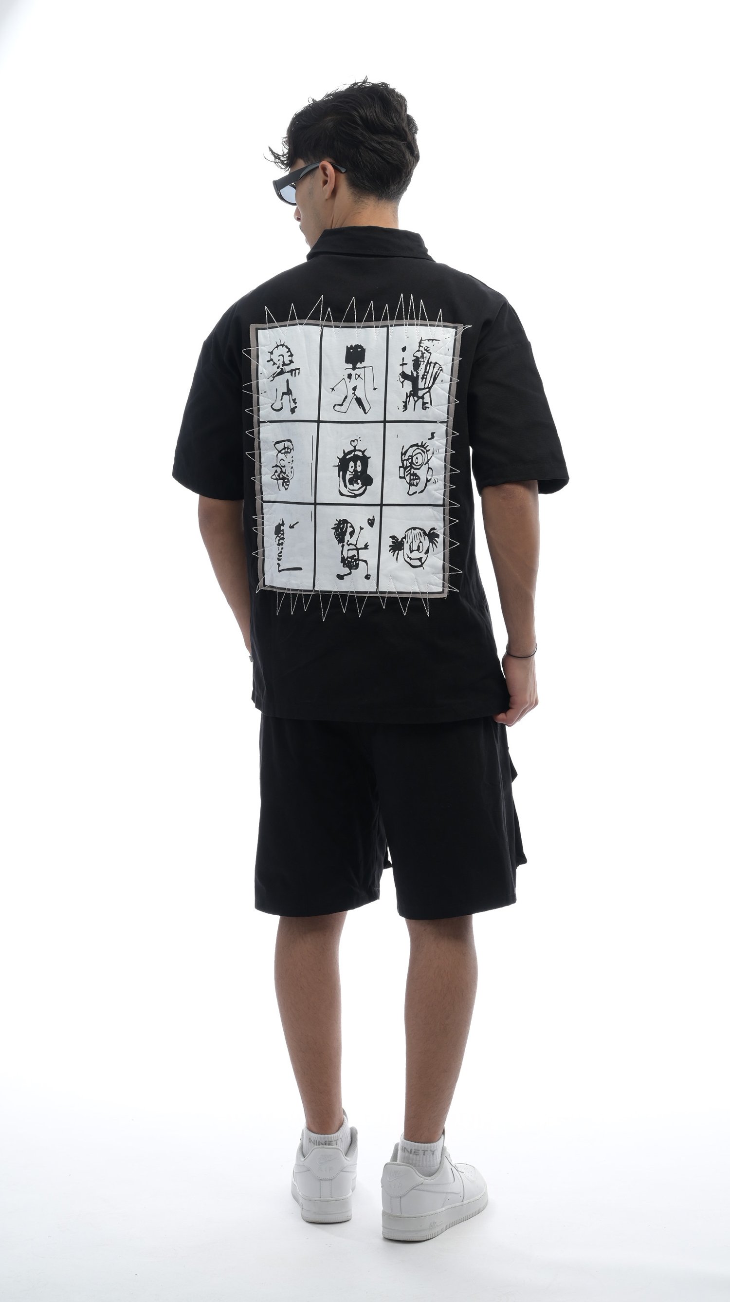 - قميص بأزرار وشورت مميز يعكس أسلوباً أنيقاً.