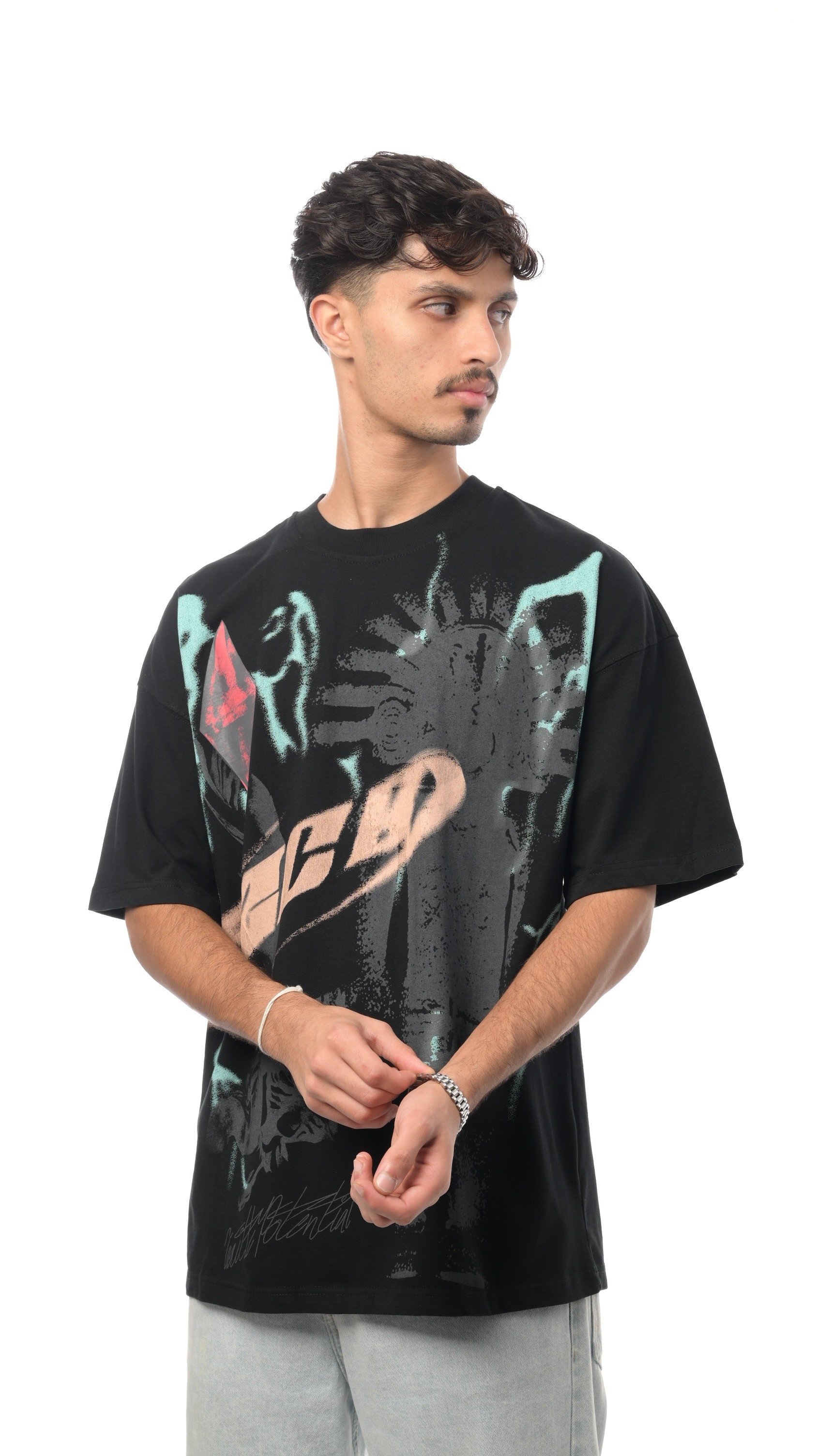 تيشيرت أرت تاتش من إكسوبلانت يتميز برسومات فنية جريئة تمنحك إطلالة ملفتة ومختلفة، مع تصميم مريح يناسب أسلوب الحياة العصري.