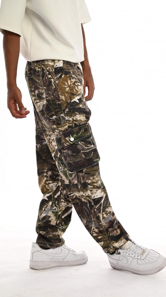 بنطلون كارجو من إكسوبلانت بطبعة تمويه غابات فريدة. تصميم عملي يناسب عشاق الرحلات والمغامرات أو الإطلالات اليومية غير التقليدية.